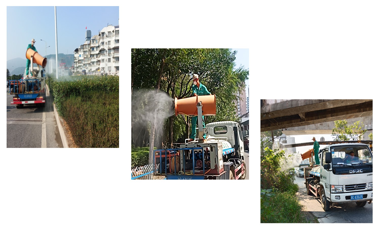 看,大型噴霧車正在對公路兩邊密集的綠化帶等蚊子聚集區(qū)域進(jìn)行高強度的噴霧消殺,范圍大,強度大,藥液量足,持續(xù)噴藥時間長讓蚊子無處遁形。