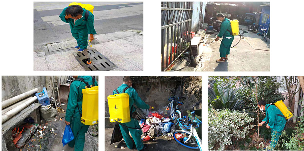 小區(qū)域采用背負(fù)式蓄電池噴霧器進(jìn)行點對點的精確消殺,不漏掉任何蚊蟲滋生區(qū)域,全范圍,全覆蓋。
