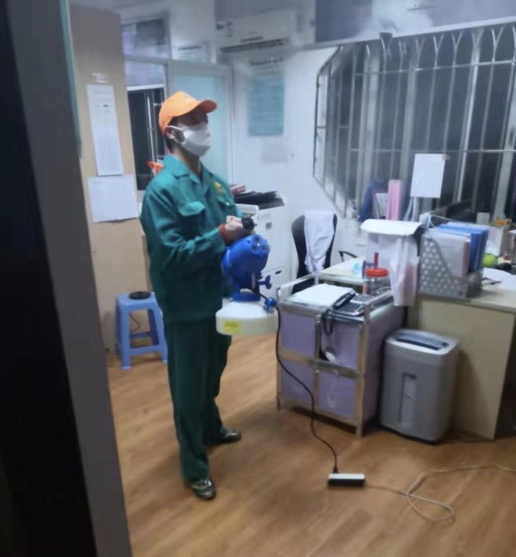 2月12日晚李紅梅主任協(xié)調(diào)好人員分工,由分管公衛(wèi)領(lǐng)導高燕同志帶隊部署消毒區(qū)域,辦公室主任林顯元同志現(xiàn)場監(jiān)督,康樂士的技術(shù)人員,根據(jù)現(xiàn)場的統(tǒng)籌安排,攜帶專業(yè)設(shè)備和藥液,進入消毒作業(yè)區(qū)域,認真細致的進行消毒作業(yè),各位領(lǐng)導的協(xié)調(diào)和指導,對康樂士的技術(shù)人員的消毒起了很大的幫助作用。康樂士的技術(shù)人員對每一個角落,每一片區(qū)域,都進行認真地消毒,真正的做到了,全方位,無死角。