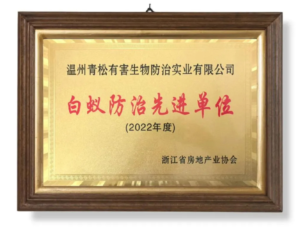 作為浙江省房地產(chǎn)協(xié)會(huì)白蟻防治企業(yè)一級(jí)單位及理事單位,溫州青松擁有專業(yè)的治理經(jīng)驗(yàn)和資質(zhì),并在2022年被評(píng)為浙江省房地產(chǎn)業(yè)協(xié)會(huì)白蟻防治先進(jìn)單位。