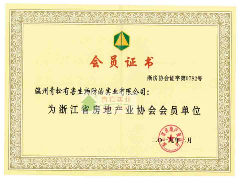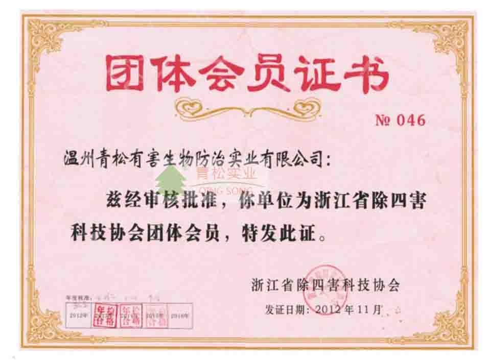 浙江省除四害科技協(xié)會(huì)團(tuán)體會(huì)員證書(shū)