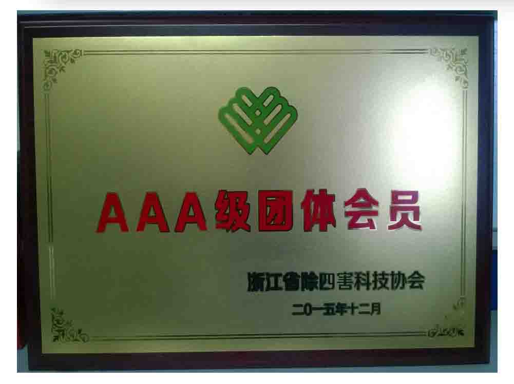 浙江省除四害科技協(xié)會(huì)AAA級(jí)資質(zhì)銅牌