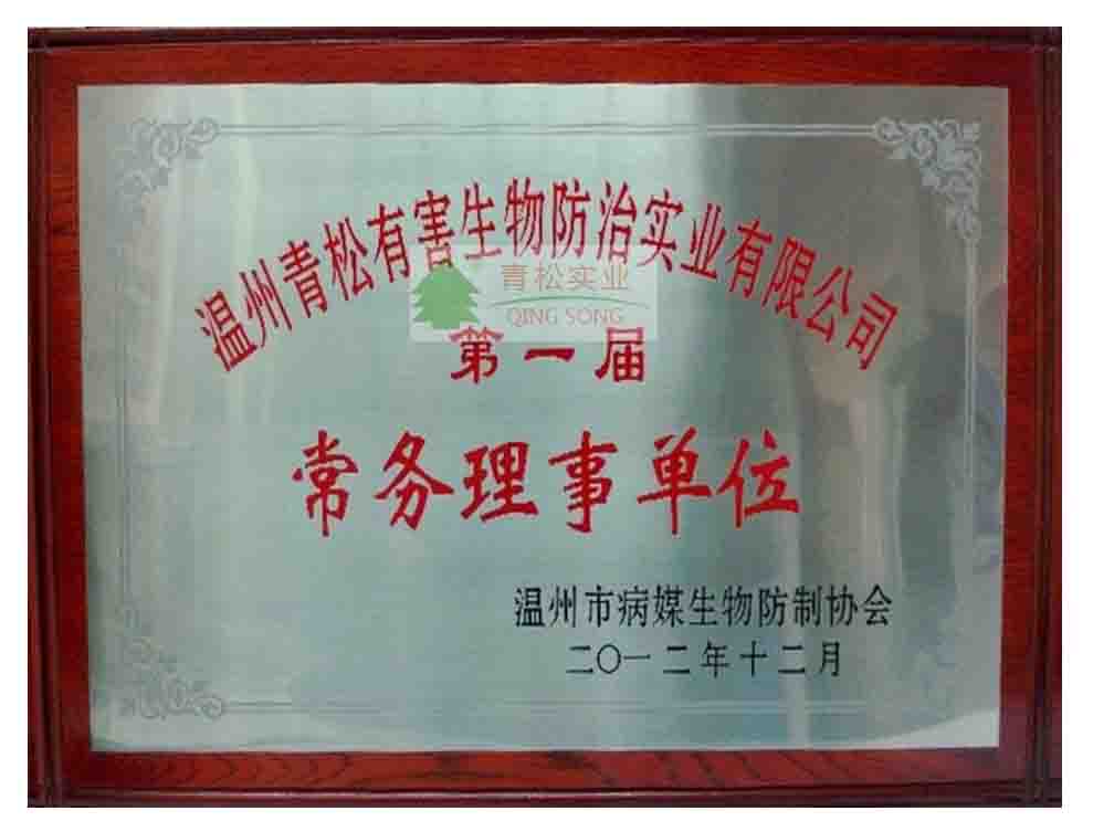 溫州市病媒生物防治協(xié)會(huì)常務(wù)理事單位資質(zhì)銅牌