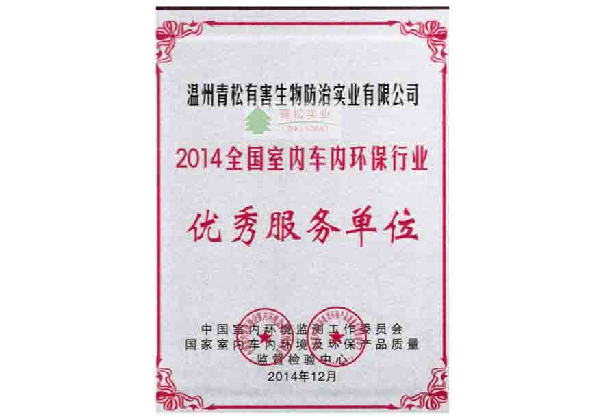 “全國(guó)室內(nèi)車內(nèi)環(huán)保行業(yè)優(yōu)秀服務(wù)單位”榮譽(yù)銅牌